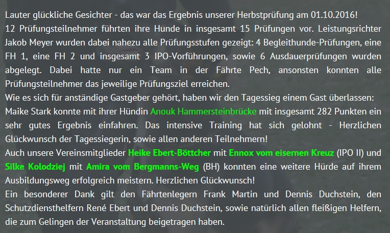 Balou erreichte am 18.03.2017 auf der Prüfung der Ortsgruppe Dörverden die Qualifikation für die LGA 2017 mit folgendem Ergebnis: