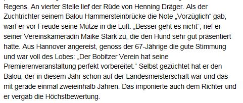 Balou bekam auf der Schau in Bobitz (bei Wismar) ein V (Vorzüglich)