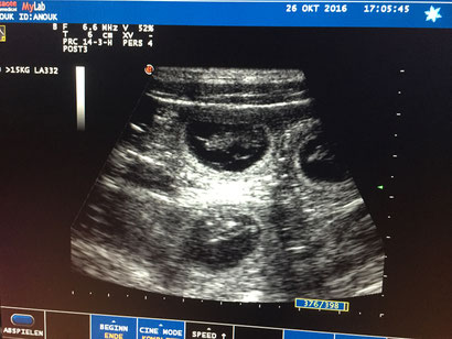 Ultraschall vom 26.10.2016, es sind mindestens vier kleine Welpen gesichtet worden.